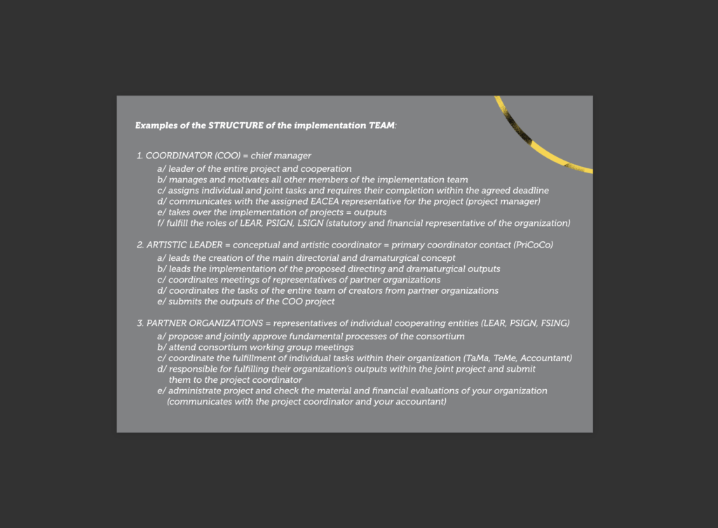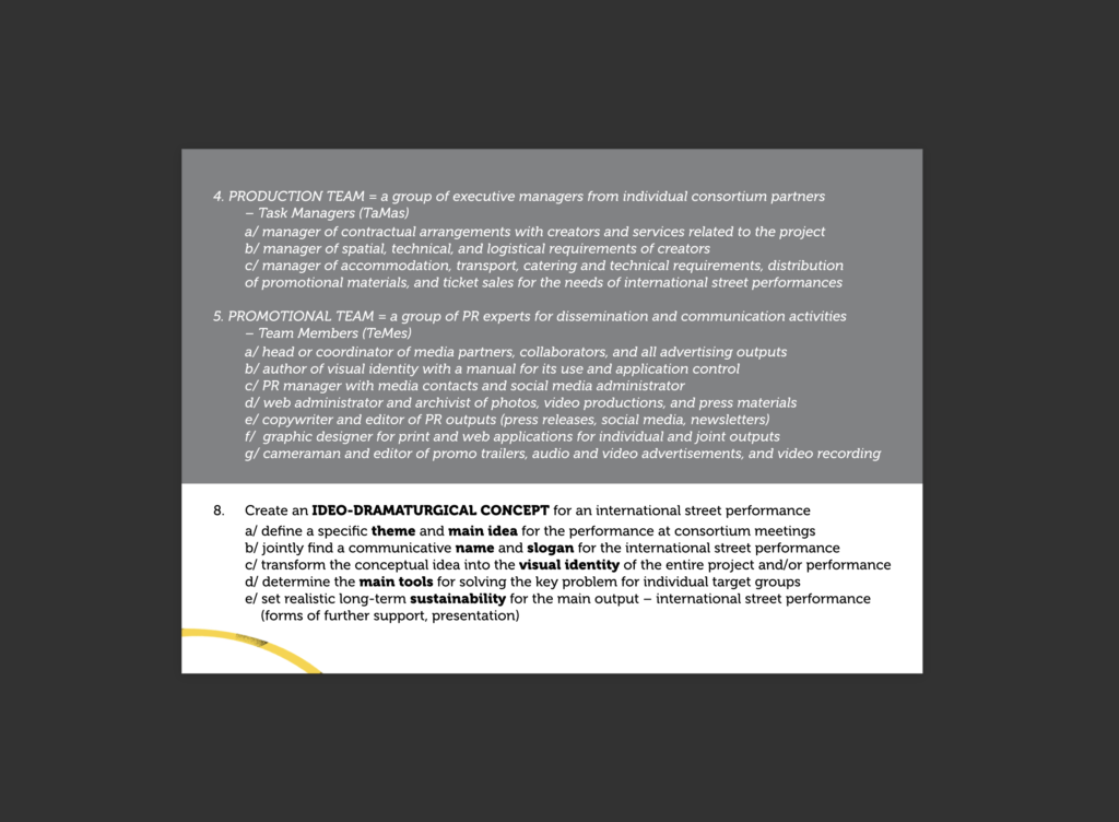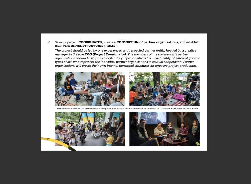 Міжнародна команда з Чехії, Словаччини та України здійснила чотириденний візит до Праги. Їхньою метою було дослідження та збір автентичних історій як натхнення для сценарію перформансу чотирьох театрів з країн Вишеградської четвірки та України. Проєкт має на меті зближення між цільовими групами дослідження – місцевими жителями вищезгаданих країн європи та українськими біженцями. На основі сценарію буде створено інклюзивний невербальний рухово-візуальний перформанс, який розповідатиме історії людей у багатонаціональних громадах за допомогою театру. Театр, який руйнує упередження, показує переваги глобального співіснування та об’єднує людей.